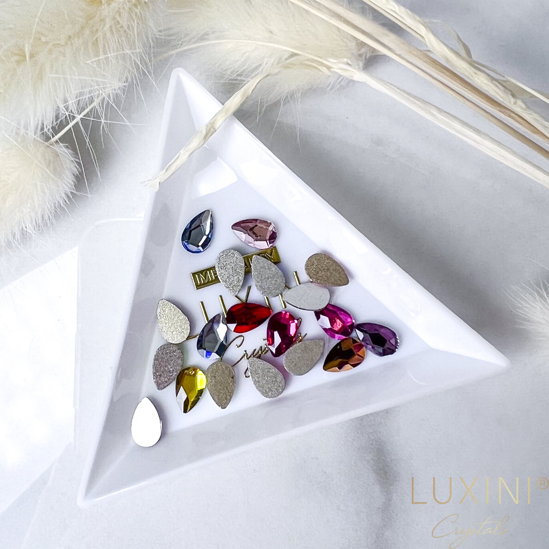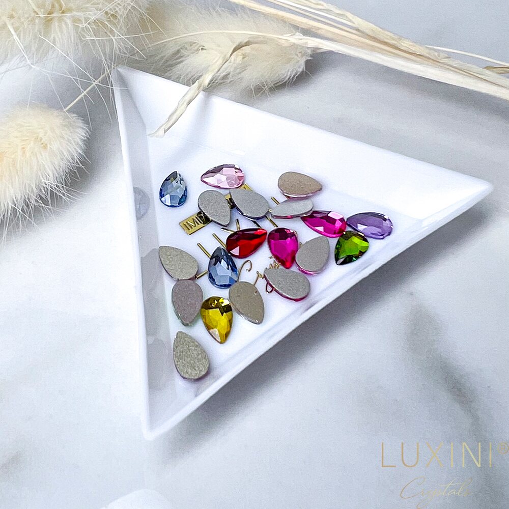 LUXINI® Shape Drop Mix sisältää näyttävän valikoiman pisaranmuotoisia kristalleja upeissa sävyissä. 5 x 8 mm koko on täydellinen katseenvangitsija: tarpeeksi näyttävä statement-kynteen, mutta silti elegantti ja monikäyttöinen.